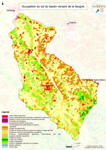 La forte empreinte agricole du territoire est observable dans l’occupation du sol : 49,7 % des surfaces sont des terres arables et 12,7% des prairies, mais cette répartition ne reflète pas l’exact portrait de l’agriculture sur la Haute-Saintonge et le Cognaçais, marqué par la forte présence viticole, surtout en rive droite de la Seugne.